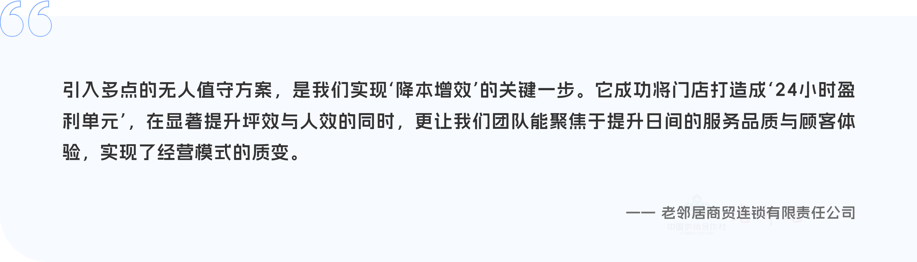 • 依托供销社供应链与社区门店网络,结合无人值守解决方案,形成“便民不辍、服务不减”的民生服务新模式;